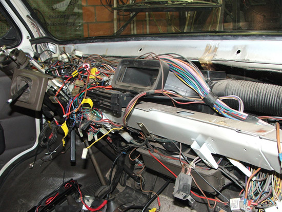 30 Jan. 2009 20:52So erfolgte heute der erste Schritt: Das Armaturenbrett wurde ausgebaut. Zwei Probleme taten sich dabei auf. Erstens waren zwei Schrauben der Befestigung zum Motorraum hin doll. Hier war war es aber von Vorteil, dass ich in den Motorraum konnte und so habe ich die Schrauben halt geknackt. Das zweite Problem liegt eigentlich in den von mir nachträglich eingebauten Kabeln, Schaltern, Mess- und Funkgeräte, Leuchten usw. Da hat sich im Laufe der Jahre einiges angesammelt. Bei der Gelegenheit werde ich jetzt auch gleich Ordnung da rein bringen und Mehrfachsteckverbindungen einbauen.