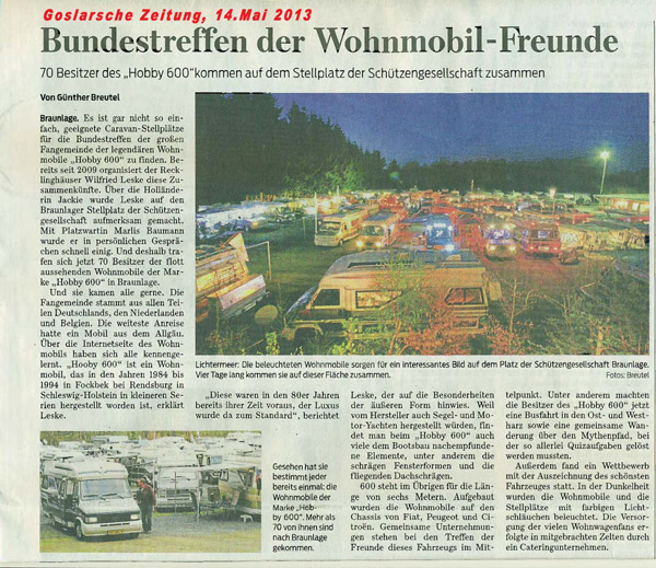 Bericht der Goslarschen Zeitung über unser Jahrestreffen 2013 in Braunlage. (nicht lachen; der Reporter hat an einigen Stellen nicht richtig zugehört)