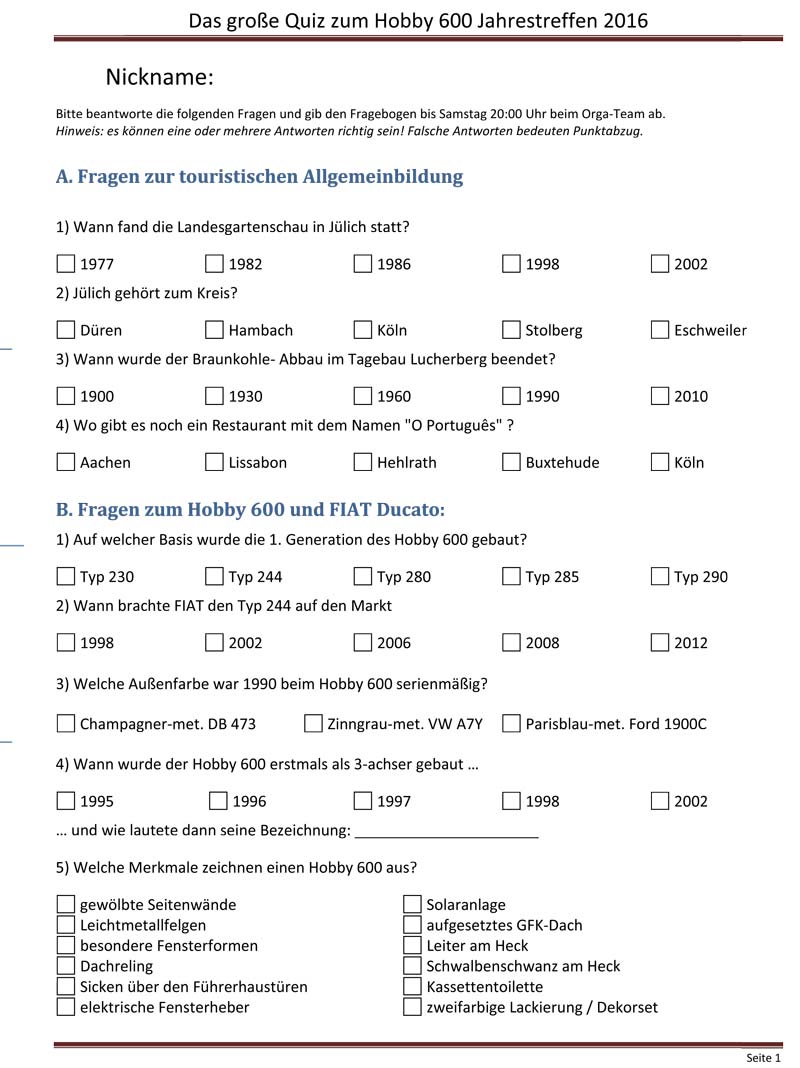 Das große Hobby 600- Quiz vom Jahrestreffen 2016 in Jülich. Teste Dein Wissen!