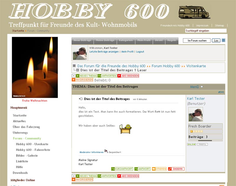 Bei Hobby600.de können alle registrierten Mitglieder Beiträge ins Forum schreiben. Sie sind dann für „alle Welt" sichtbar, können aber nur von registrierten Mitgliedern beantwortet werden.