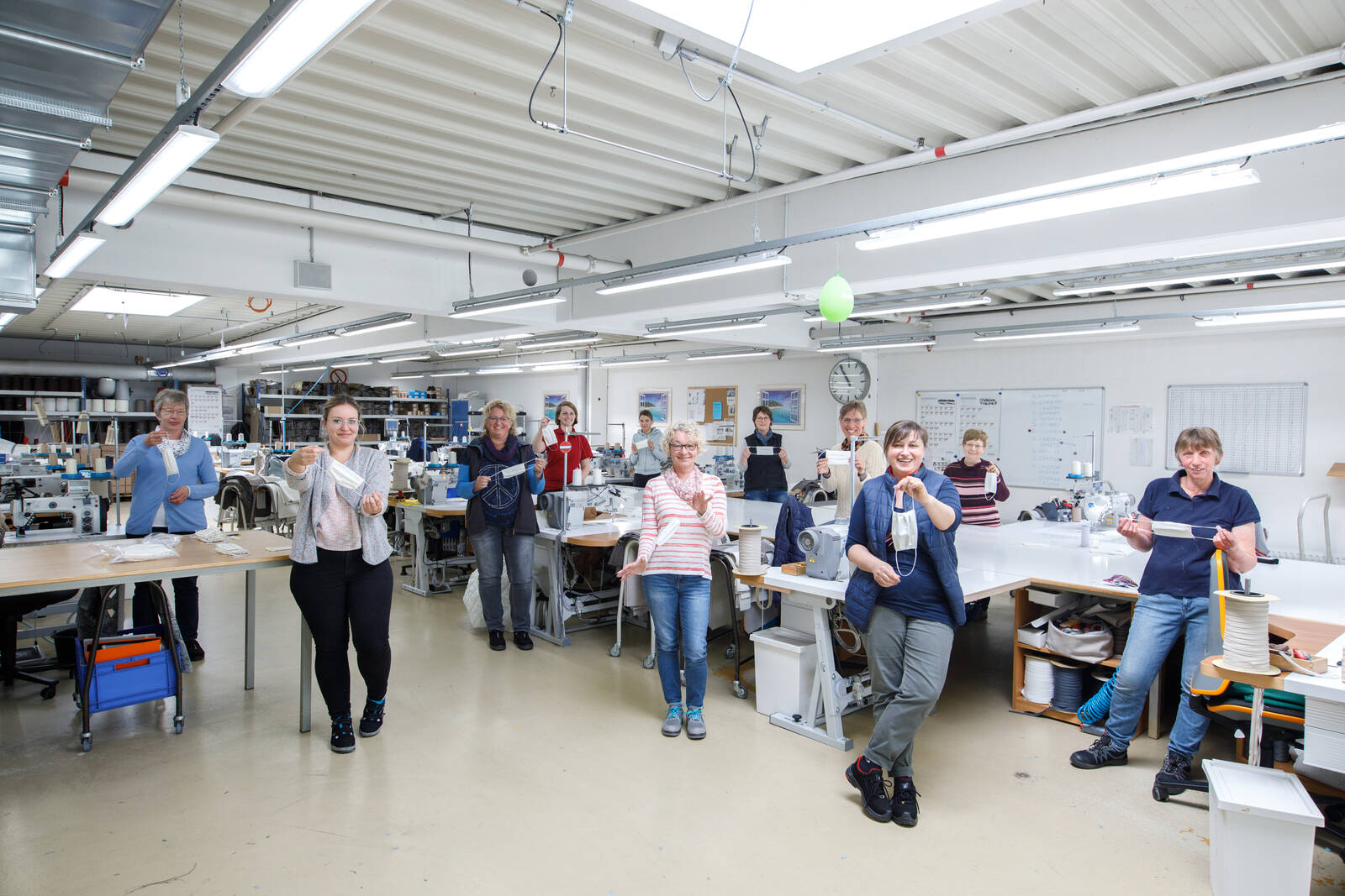 Die Gesichtsmasken für die knapp 1.200 Mitarbeiter hat die hauseigene Näherei von Hobby in den letzten Tagen selbst produziert. Jeder Mitarbeiter wird mit 5 hygienisch verpackten Masken vor Arbeitsbeginn ausgerüstet. Die Herstellung erfolgt nach Expertenangaben, die Masken sind bei 60 Grad waschbar.