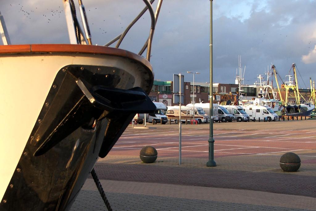 Wir haben die Tour in Urk gestartet. Dort befindet sich ein Wohnmobil-Stellplatz für 20 Fahrzeuge direkt am Hafen. Man steht zwar auf einem Parkplatz, bekommt dafür aber das ganze Leben rund um den Hafen hautnah mit. Ein- und auslaufende Schiffe, Ladevorgänge, Sportboote, Luxusyachten und natürlich die typischen Plattboote. Für 15€ pro Nacht bietet der Platz neben dem hohen Unterhaltungswert auch Strom und V/E. Einzig der Gang mit dem Hund dauerte immer etwas länger, da das nächste Grünland doch etwas weiter weg ist.