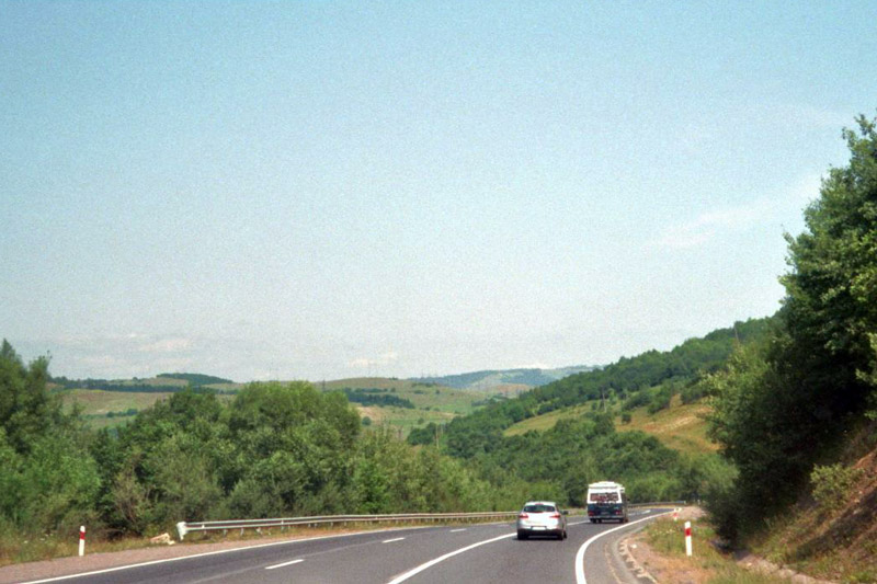 Nach der Burgbesichtigung fahren wir durch Mukatschewe weiter in die Karpaten über den Kamm in Richtung Lemberg. Eigentlich bin ich bis jetzt (mit Ausnahme in der Stadt Mukatschewe) mit dem Straßenzustand zufrieden. Aber urplötzlich ein Knall; ein tiefes Schlagloch hat mich gefunden. Kaputt ist Gott sei Dank nichts. Bei uns daheim, so meine ich, wäre hier längst eine Umleitung.