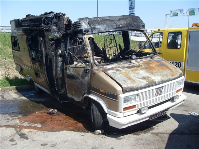 Nach Dieters Aussage bemerkten sie während der Fahrt - kurz nach einem Tankstopp - einen komischen Geruch aus dem Armaturenbrett. Als Dieter das Fahrzeug stoppte, schlugen schon Flammen aus den mittleren Heizungsöffnungen. Er versuchte noch die Batterie abzuklemmen, aber erfolglos. Innerhalb von sieben Minuten brannte der Hobby 600 aus.