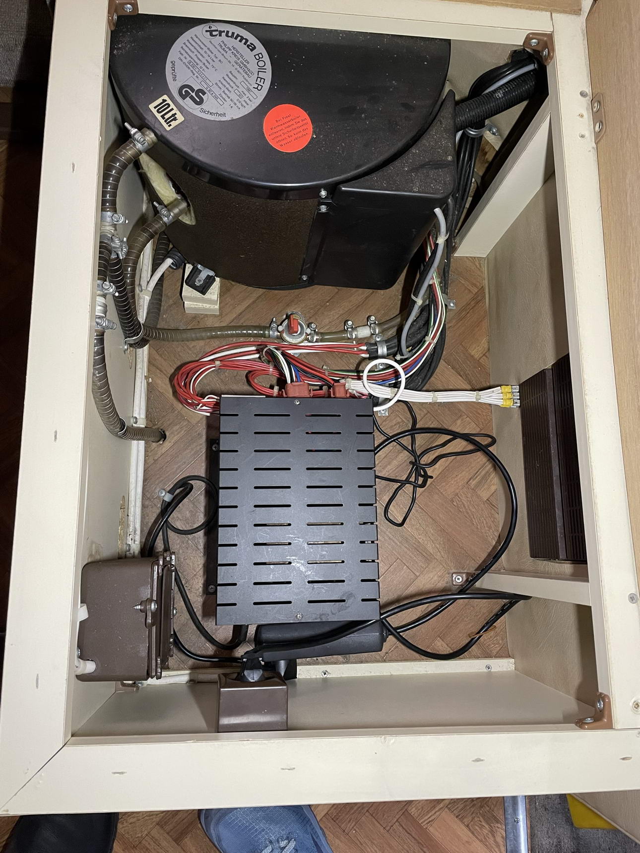 Wir vereinbarten einen weiteren Besichtigungstermin mit Probefahrt. Diese verlief bis auf den beim Start etwas bläuenden Motor und eine leicht glimmende Batteriekontrollleuchte recht zufriedenstellend. Die Elektrik zeigte sich in einem unverbastelten Zustand. Der Herd funktionierte, was auf die Heizung leider nicht zutraf. Auch konnte der Wasserkreislauf und Boiler nicht getestet werden, da kein Wasser im (sauberen) Frischwassertank war.