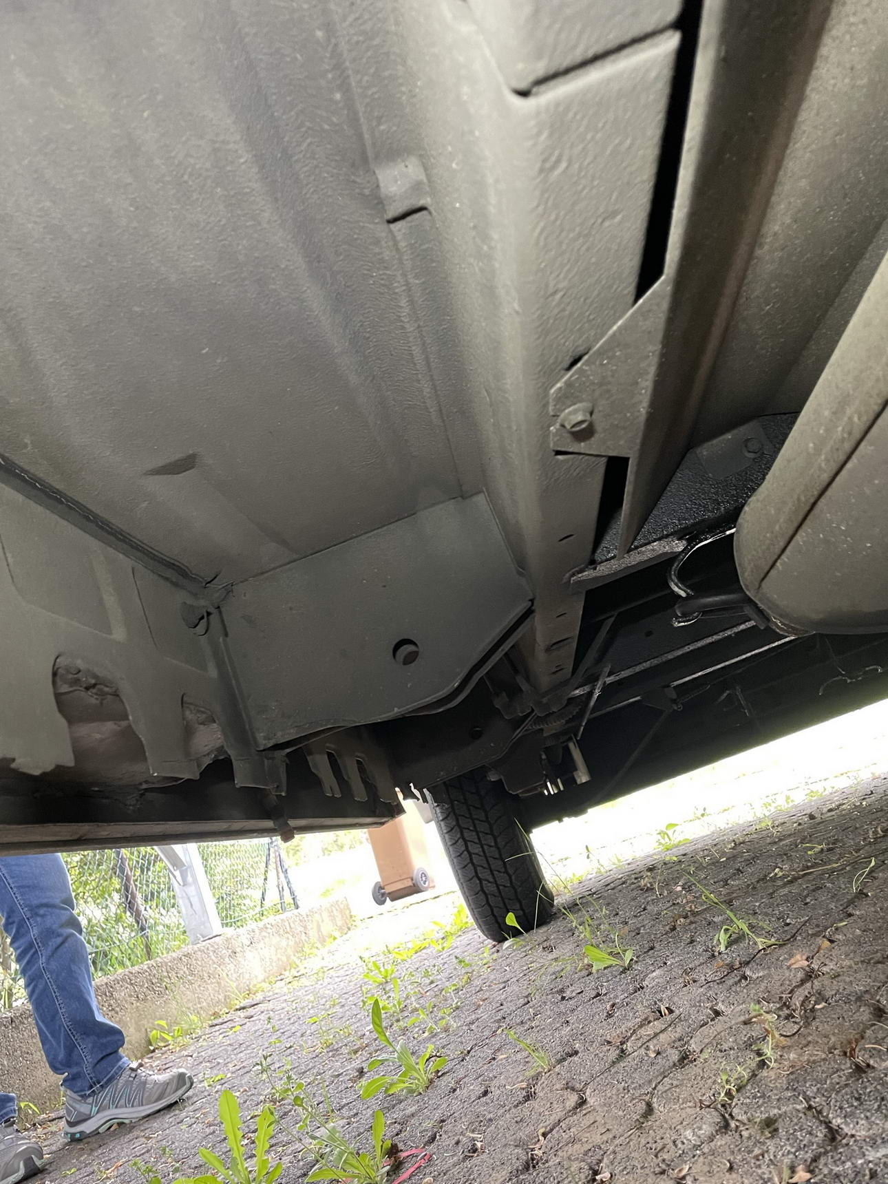 Der Frontscheibenrahmen war in den letzten Jahren fachmännisch instandgesetzt, die unteren Querlenker und das hintere Motorlager waren neu und auch die Ölwanne wurde kürzlich ersetzt. Der Unterboden war an einigen Stellen verölt, was darauf schließen ließ, dass die alte Ölwanne undicht war. An keiner Stelle war irgendwelcher Unterbodenschutz zusätzlich aufgetragen! Leider war die mittlerweile recht schwer zu bekommende Frontstoßstange höchstwahrscheinlich bei einem Abschleppversuch etwas ramponiert worden. Sämtliche Unterlagen (Original Bedienungsanleitung Hobby 600, Bedienungsanleitung für Kühlschrank, Boiler, Heizung, Porta Potti, Markise, sowie drei Gasprüfungsbücher) waren ebenso vorhanden, wie einige zurückliegende Rechnungen, TÜV-Berichte und Gutachten.