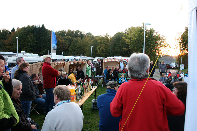 Neben dem Technik-Talk gab es da ja auch noch das Quiz. Jackie und Frank hatten wieder ein paar interessante Fragen rund um den Hobby 600 und um das Reisen mit dem Wohnmobil zusammengestellt. Für einen Teil der Fragen musste man sogar einen etwas längeren Spaziergang durch Bad Marienberg machen. Dort konnte man auch gleich das Stadtfest „Lange Theke" besuchen und sich über Produkte der Region informieren oder einfach nur den Bauch voll schlagen....und wer nicht mehr laufen konnte, wurde von Wolfgang, dem Platzwart, mit dem Bus abgeholt.
