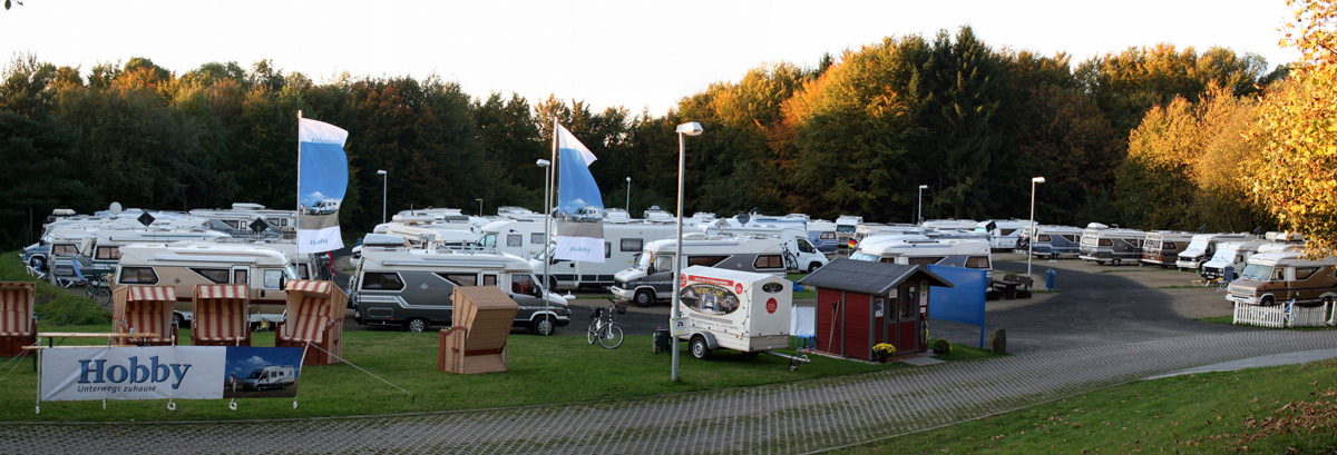 Ziel von 50 Hobby 600- Besatzungen war der erst im April 2010 eröffnete Wohnmobilpark am Marienbad . Normalerweise verfügt die Anlage nur über 41 Stellplätze, aber wenn man dichter zusammenrückt, kann man auch besser quatschen. So standen Erfahrungsaustausch und Kontaktpflege auch im Mittelpunkt des Treffens.
