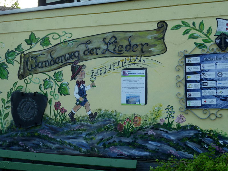 In unmittelbarer Nachbarschaft macht ein Wandbild darauf aufmerksam, dass die herrliche Landschaft an der Mosel und ganz speziell rund um Enkirch, mit zu den schönsten Wandergebieten gehört. Ein besonderes Erlebnis ist wohl die "Liederwanderung", die rd. 3 km durch die Weinberge bis zu den Kirster Höhen führt. An den bis zu acht Stationen werden altbekannte Wanderlieder unter musikalischer Begleitung gesungen. Selbstverständlich wird auch für das leibliche Wohl bestens gesorgt und so bieten die einheimischen Winzer acht verschiedene "gute Tropfen" aus eigenen Kellereien und die örtlichen Metzger ebenfalls acht Wurstsorten aus eigener Herstellung an. Es versteht sich von selbst, dass auch diese Erzeugnisse aus nachvollziehbarer Herkunft aus der näheren Umgebung stammen. Alle, die noch einmal in Enkirch Station machen möchten um an einer Liederwanderung teilzunehmen, sollten sich den nächsten Termin,