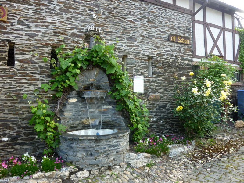 Zurück ins Städtchen. Neben den vielen beschaulichen Details machen auch die fein heraus geputzten Fachwerkhäuser auf sich aufmerksam und laden den Besucher zum Verweilen und betrachten ein. Dazwischen eröffnen sich immer wieder fantastische Ausblicke auf die Weinberge, die sich über fünf Seitentäler bis in die waldbedeckten Hügel des Hunsrücks ziehen