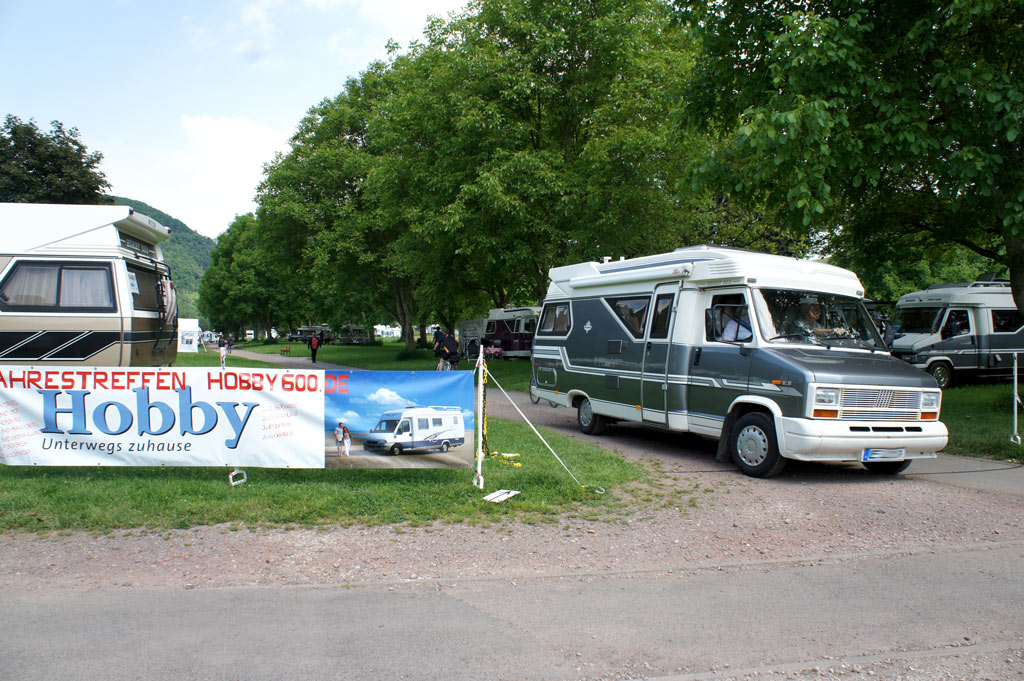 Seit dem Jahr 2009 treffen sich die User von Hobby600.de regelmäßig mit ihren Fahrzeugen zum Erfahrungsaustausch. Diese Treffen erfreuen sich zunehmender Beliebtheit, was sich in einer ständig steigenden Teilnehmerzahl wiederspiegelt. So fanden in diesem Jahr insgesamt 93 Fahrzeuge vom Typ Hobby 600 den Weg nach Enkirch an der Mosel. Auf dem dortigen Wohnmobilstellplatz war am Himmelfahrts-Wochenende ein größerer Bereich für die Kult-Wohnmobile aus Fockbek reserviert.