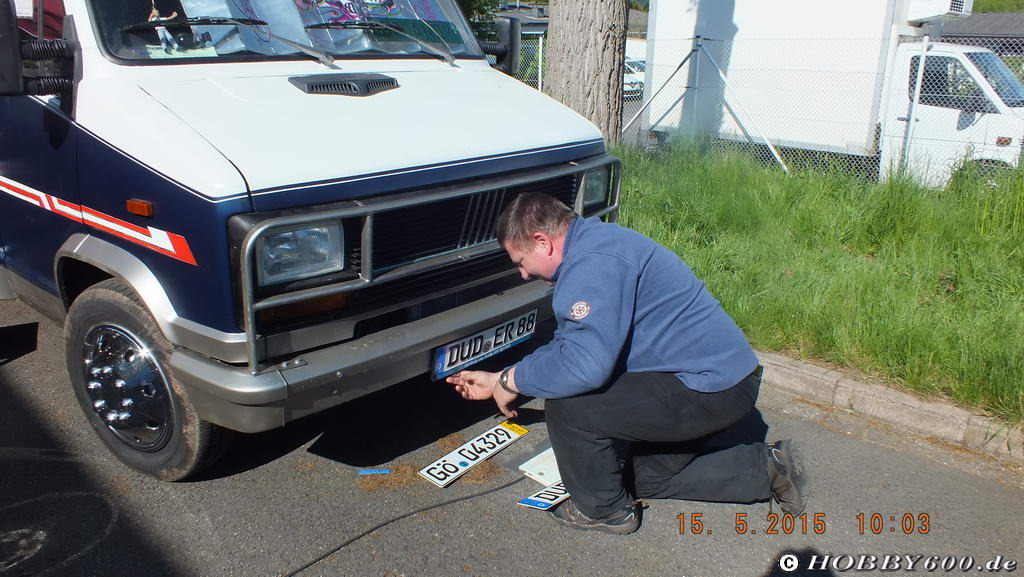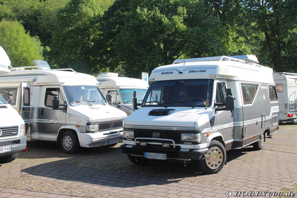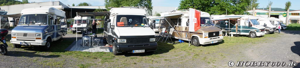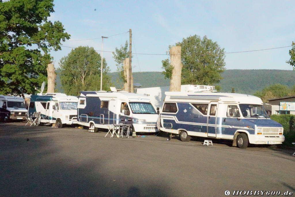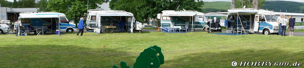 Hier ist besonders das Fahrzeug von DJ Andy zu erwähnen. Acht Jahre stand er fast vergessen in einer Scheune, bevor Andreas ihn kaufte. Die Restauration dauerte fast ein Jahr und war zeitlich so eng auf das Treffen abgestimmt, dass der Hobby 600 am Mittwoch erst noch zur Hauptuntersuchung zum TüV musste. Mit Kurzzeitkennzeichen rollte er anschließend nach Hann. Münden, um am Freitag dann endgültig angemeldet zu werden.