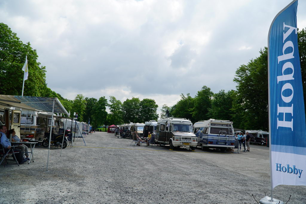 Zur Eröffnung des Treffens begrüßte uns eine Vertreterin der Stadt Bad Mergentheim. Während wir weitere Informationen zu unserem Veranstaltungsort bekamen, konnten wir ihr den Unterschied zwischen normalen Wohnmobilen und dem Hobby 600 nahe bringen. Es ist schon ein beeindruckendes Bild, wenn ausschließlich Fahrzeuge mit gewölbten Seitenwänden, besonderen Fenstern und einem GFK-Dach mit Schwalbenschwanz in Reih und Glied stehen.