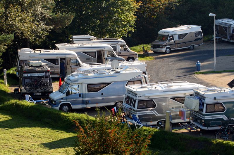 Ich fuhr eine Abkürzung über einen Schotterweg, dann scharf links auf den großen, tollen Stellplatz. Im ersten Sichtbereich standen schon die Fahrzeuge von Lollo_C, Hobbytreiber und Buddymobil. Das war eine Begrüßung! Schwester Ilona, die Frau von Hobbytreiber, hatte schon Selbstgebranntes parat. Nee, erst einparken.