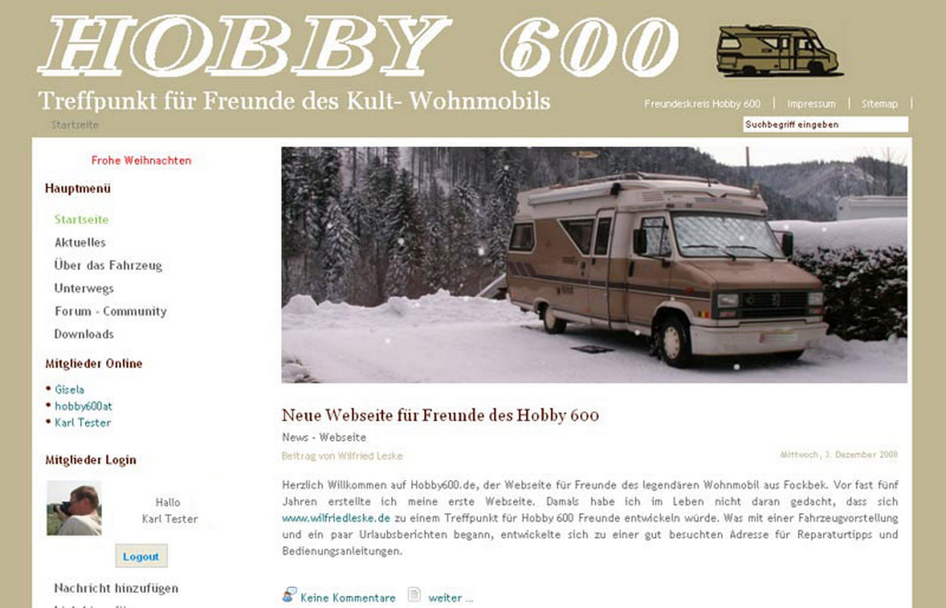 Ein etwas trauriges Ereignis war der Brand des Hobby 600 von speedy75 auf der Fahrt zum Jahrestreffen nach Rendsburg. Zum Glück ist den Beiden nichts passiert und sie nutzten die Katastrophe als Chance. So fahren sie jetzt mit einem Hobby 600 der Linie D. Für sie ist es übrigens der dritte Hobby 600. Man spürt auf der Webseite im Forum übrigens auch zunehmend das Interesse an den jüngeren Modellen des Hobby 600.